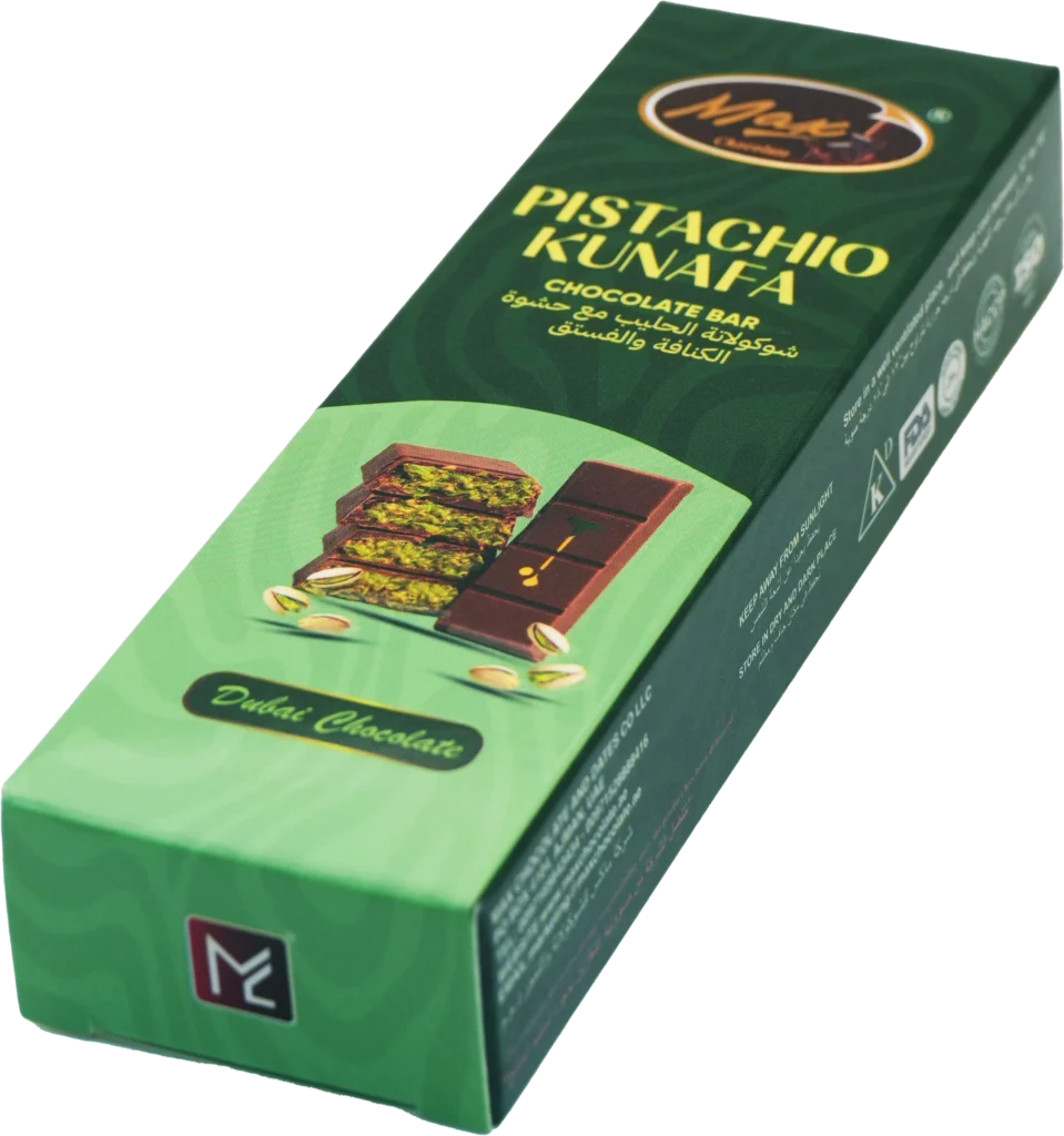 Inspired by Dubai, crafted for you. Rich chocolate, vibrant pistachio